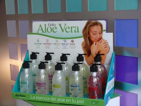 Nuestros clientes ya pueden disfrutar de un nuevo Expositor sobremesa, de la amplia Línea de Geles de Aloe, del laboratorio Derbós.