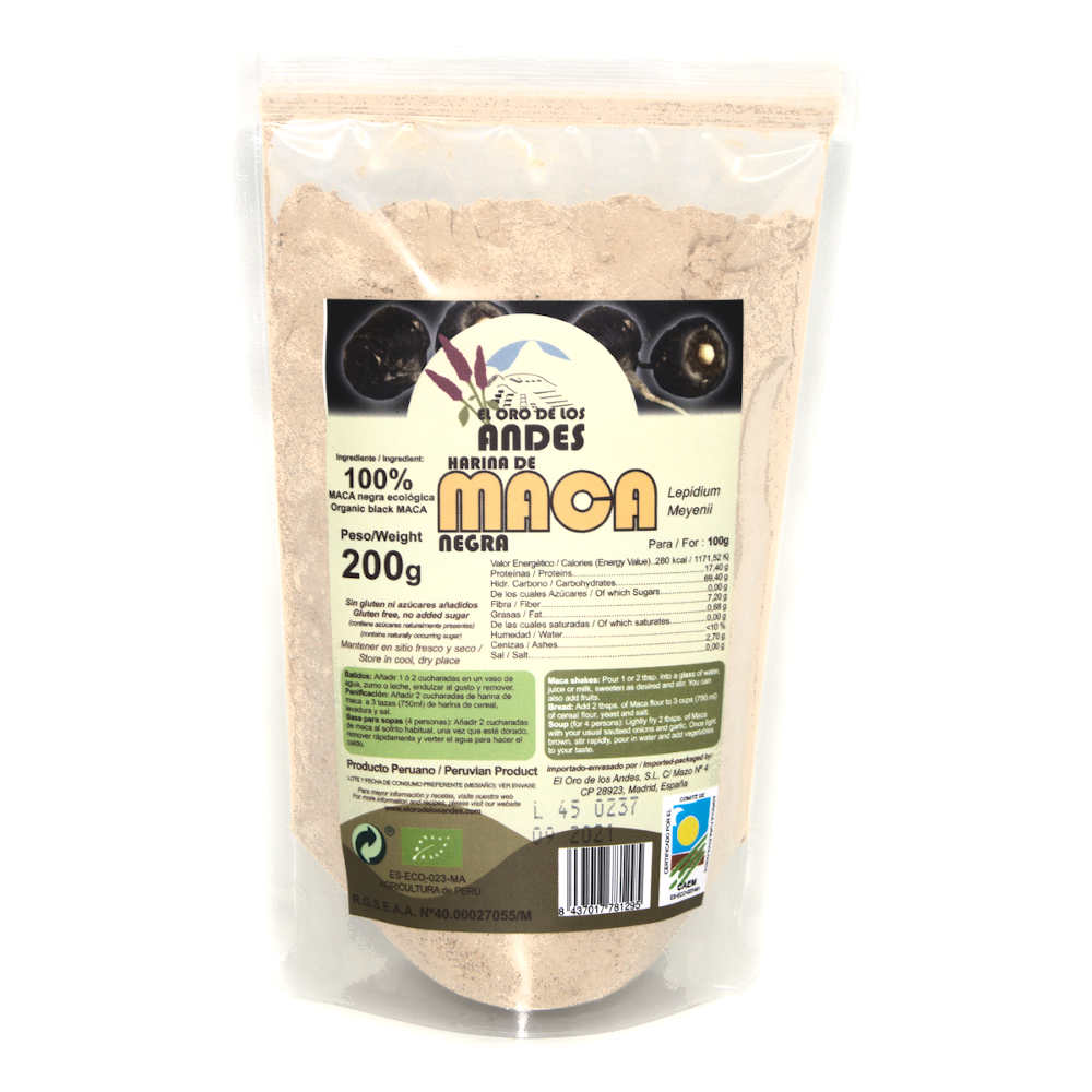 100% Maca negra ecológica. Agua (10%). Cenizas (2,7gr). Alérgenos: SIN GLUTEN. SIN TRAZAS * de agricultura ecológica.